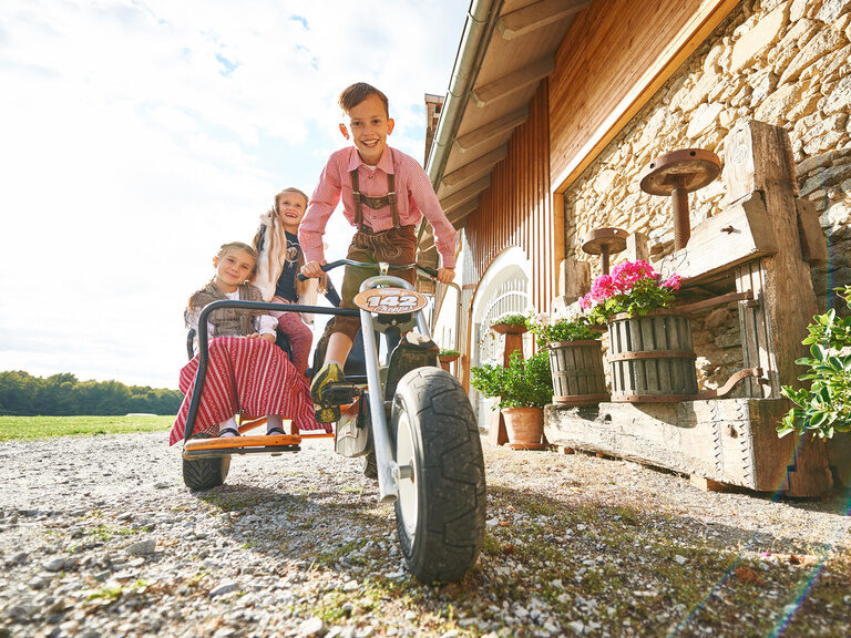 Überzeugen Sie sich selbst von unserem Ferienhof Stetter und sammeln bereits erste Eindrücke vor Ihrer Ankunft. Der Stetterhof ist ein Ort voller Möglichkeiten für Ihre Kleinen. Hier können Sie toben, spielen und entdecken und sind durch den Vierseithof sicher vor Gefahren geschützt.
