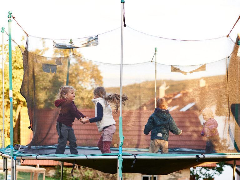 In der großen Spielscheune und auf dem Spielplatz gibt´s jede Menge Möglichkeiten zum Spielen, Spaß haben und Austoben. Lustig geht´s zu beim Matratzenlager bauen und Heuhüpfen.