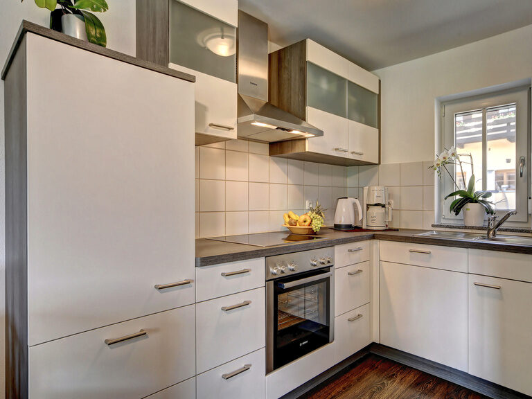 - Offene Küche mit Spülmaschine, Kühl-Gefrierkombination, E-Herd mit Ceranfeld, Kaffeemaschine, Toaster und Wasserkocher